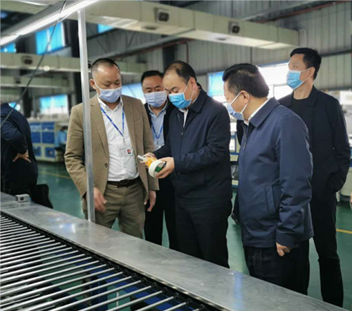 現場,市委副書記朱健認真查看了我司生產的產品,并對我司的有序生產進行了表彰。同時,他要求市防疫辦一定保證國立寶泉所有員工的口罩供應,在防疫物資調配時,對人員密集型工廠,一定要優先保證,以確保人員的安全。