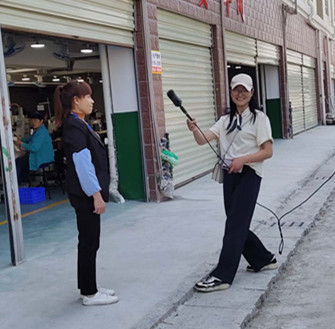 在家門口上班的針車員工,接收當地電視臺采訪。